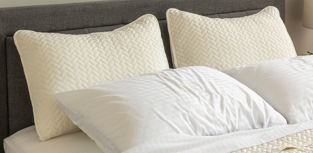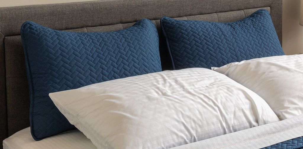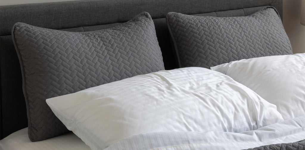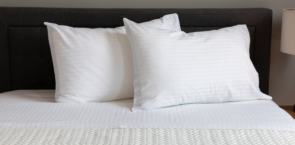 The Comfort Toes Bedding System™ includes premium sheets that are designed for softness, durability and get softer with each wash. Made from a high-quality blend of cotton and polyester, these sheets feature a subtle satin stripe that adds a touch of elegance while providing a smooth, comfortable feel against your skin. With a generous top hem and a tailored fit, they add a timeless sophistication to your bedding and seamlessly integrate into the whole system, ensuring a restful night’s sleep.